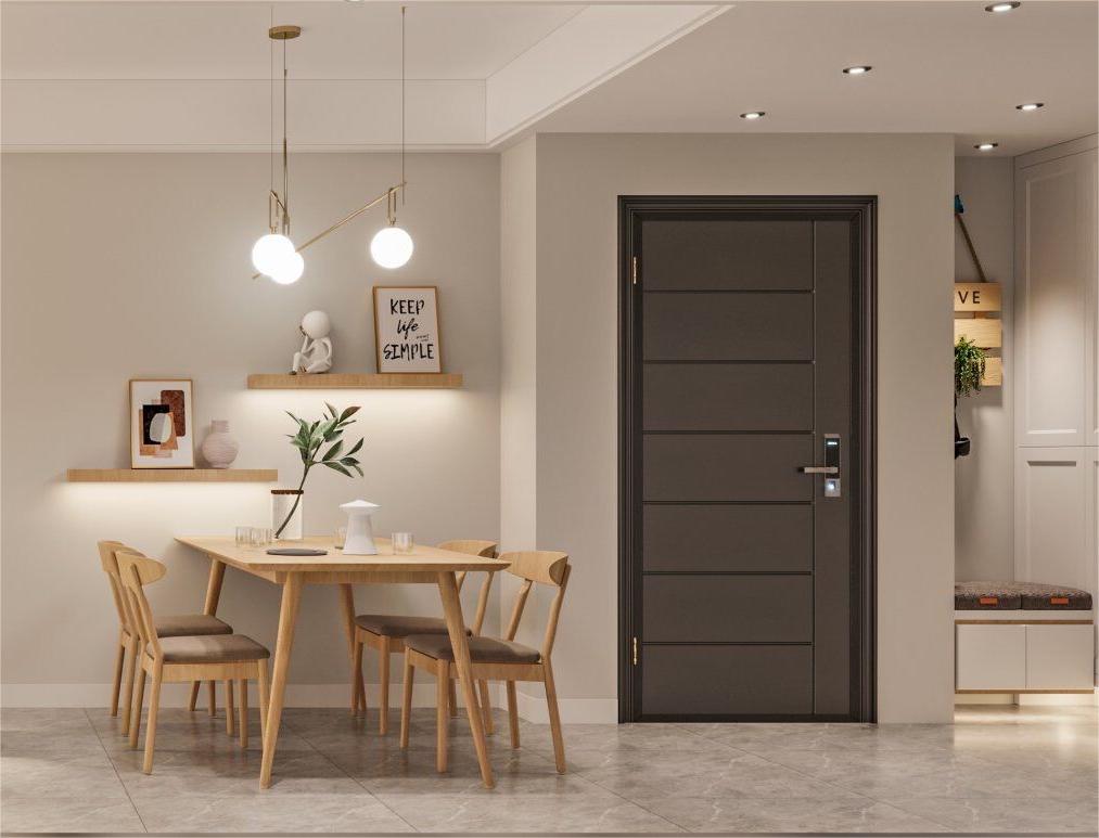 線條利落、簡約自然的餐桌加上柔和的球形吊燈烘托出溫馨自然的用餐氛圍,進(jìn)門鞋柜整體采用奶昔白色調(diào),整柜入墻,搭配原木設(shè)計,溫和簡約,令人感到舒適