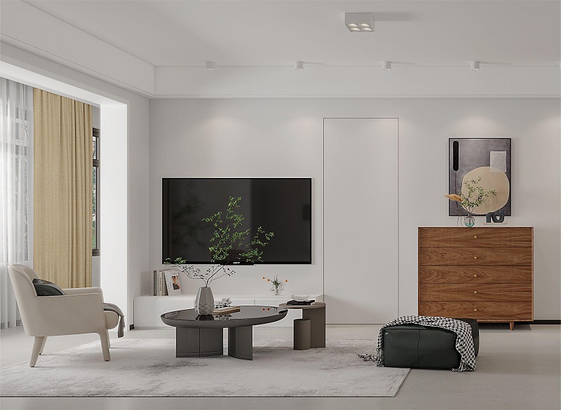 電視背景墻采用大面積的白色,干凈利落,使整體空間更為和諧。